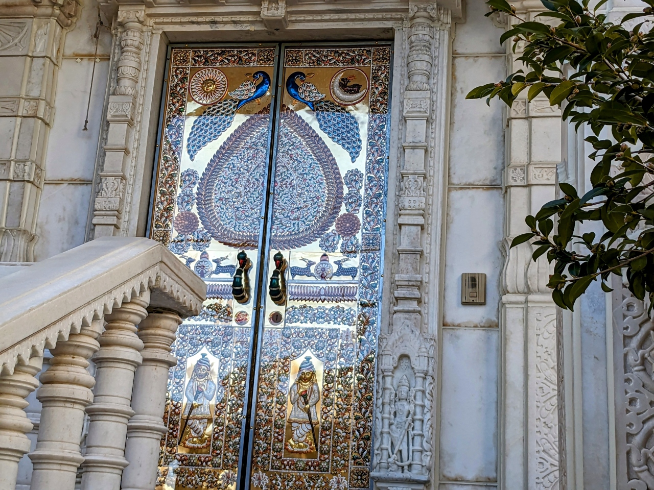 インドから取り寄せた純白の総大理石が美しく、繊細な動植物の彫刻に目が奪われます。