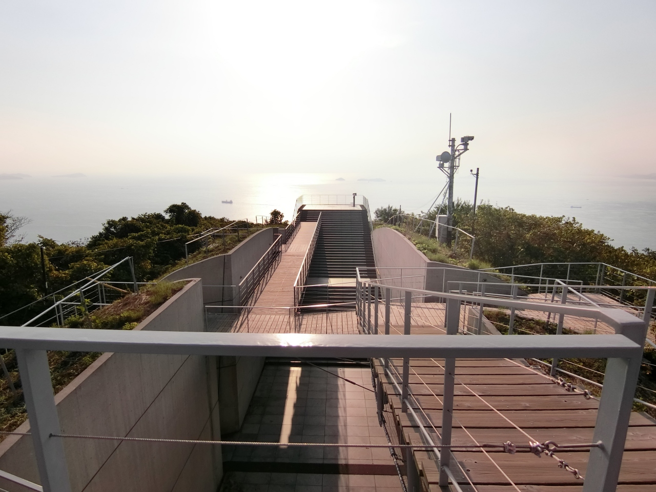 東西に展望台がV字に配置され、特に西側展望台からは、来島海峡に浮かぶ多島美と