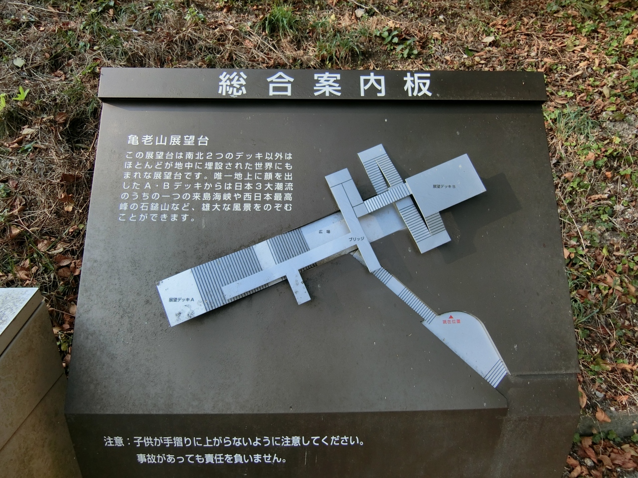 隈研吾氏設計の展望台は地中に埋め込まれ、建築を消すような設計で、