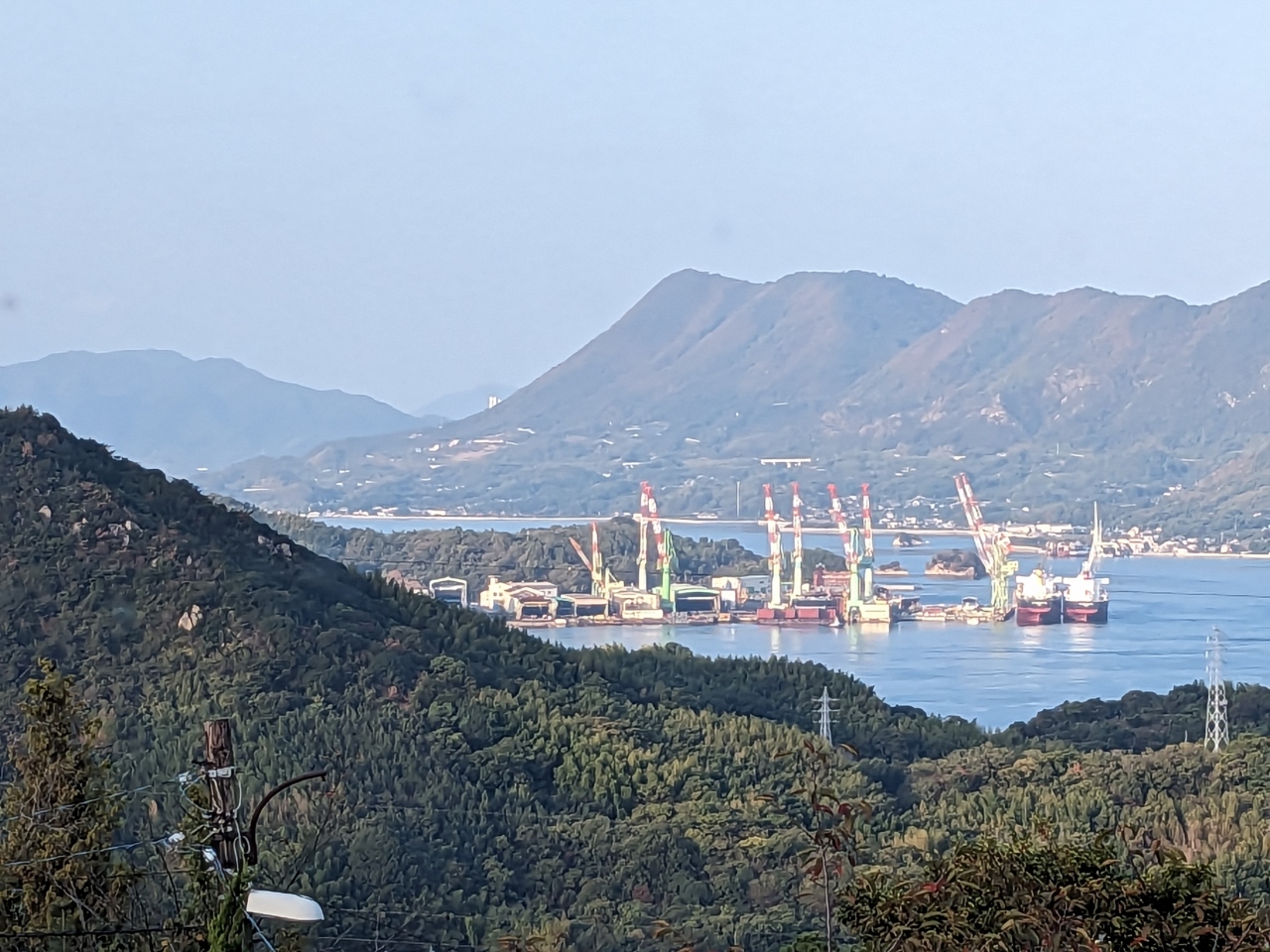 お天気が良いと、大小の行き交う船や、遠くには、四国連峰や、潮の流れのはやい来島海峡大橋あたりまで、見渡せます。