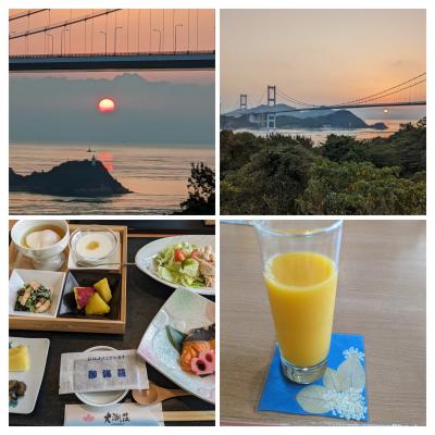 日本三大海峡の一つ、来島海峡大橋が見える宿で、朝日や夕陽の時間帯が素晴らしいです。
