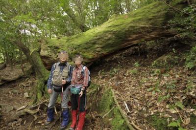 倒木に苔が生えています。土埋木というそうです。人工的に伐採されたもの台風等で自然に倒れたもの。屋久杉の木工品にもなるそうです。