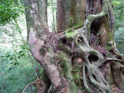 下剋上が厳しいようで屋久杉に若い木が根を巻きつけています。締め殺しという現象だと聞いた記憶が有ります。