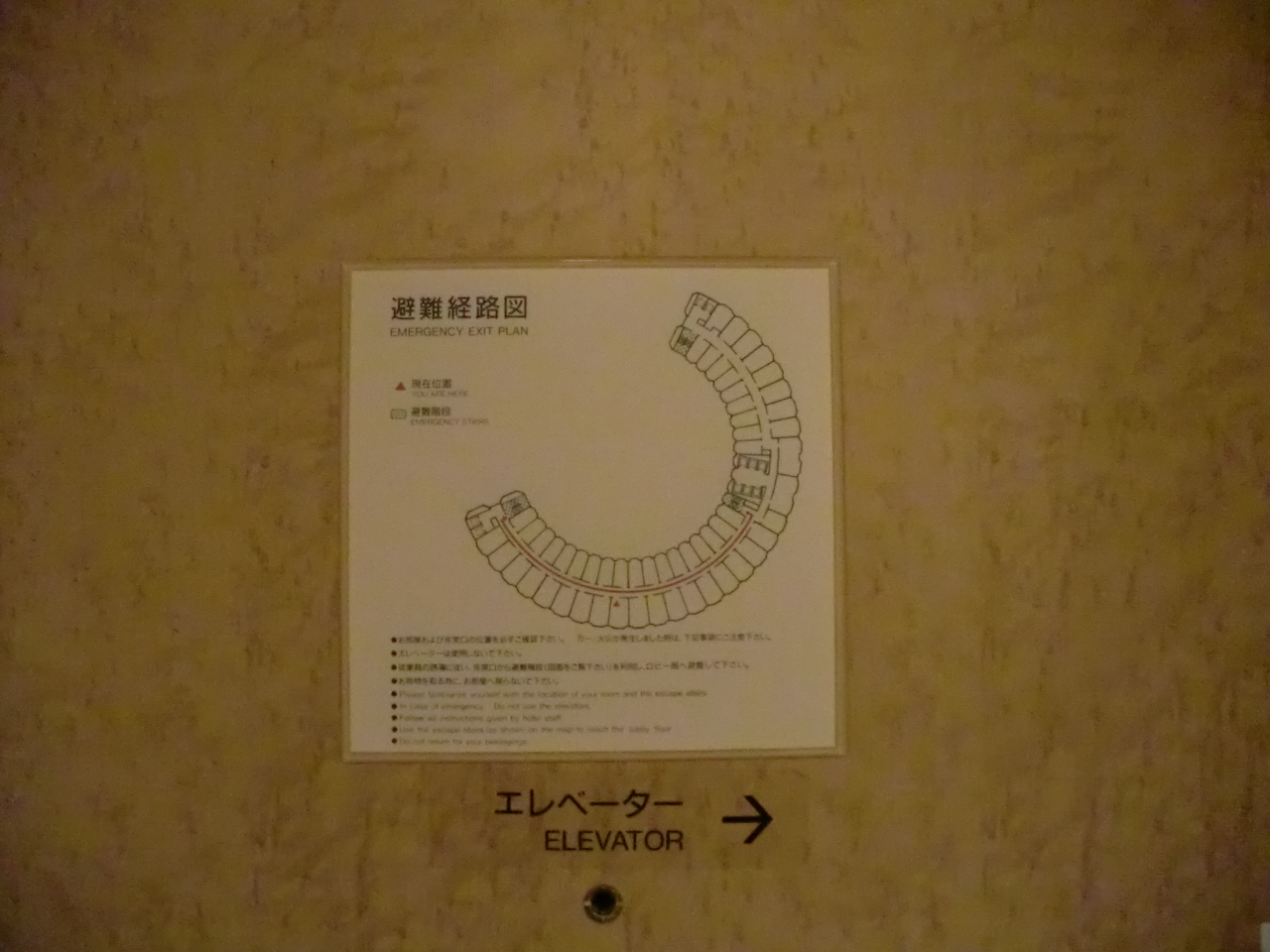 中庭が見える部屋(内円側)より、空港が見える(外円側)の部屋のほうが広くて快適。