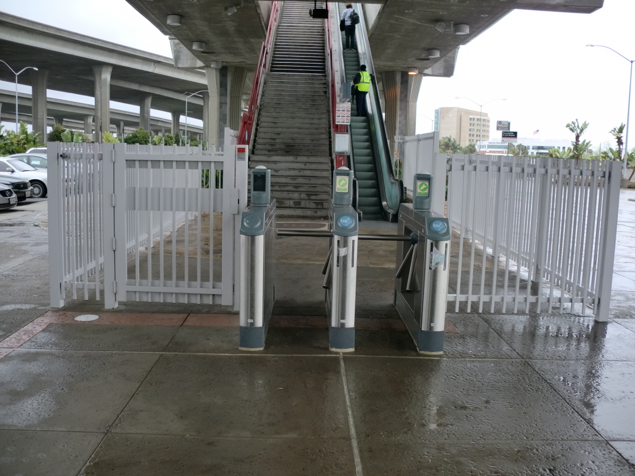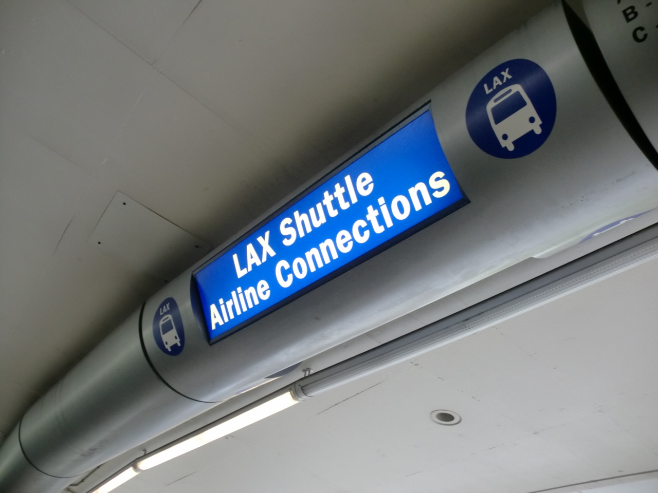 ハリウッドから空港はその逆。AVIATION/LAX駅で、電車から空港までのLAX SHUTTLE CONNECTION"G"のバスは乗車時にMETROの乗車券の提示を求められる。