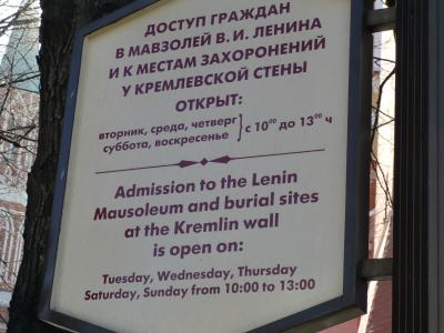 入場が近づくと、その横にある手荷物預け所を利用します。一度入場すると、追いたてられたりせず、ゆっくりと壁沿いに見学できます。が、しかし、レーニン廟の中だけは別です。 一定のスピードで歩かないといけません。止まったり、話をすると、衛兵に注意されます。笑ってもダメみたいです。