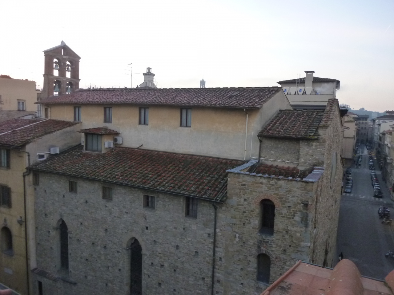 フィレンツェで最も古い教会の一つです。正面のファザードは質素な造りで、装飾はほとんどありません。入り口の上に聖母子があるだけです。また、屋根には4つの鐘がよく見えるように配置されています。この教会で珍しいのは、通りに面した壁にベルタという女性の顔があります。高い位置でしかも小さいので見つけにくいかもしれませんが確かにありました。