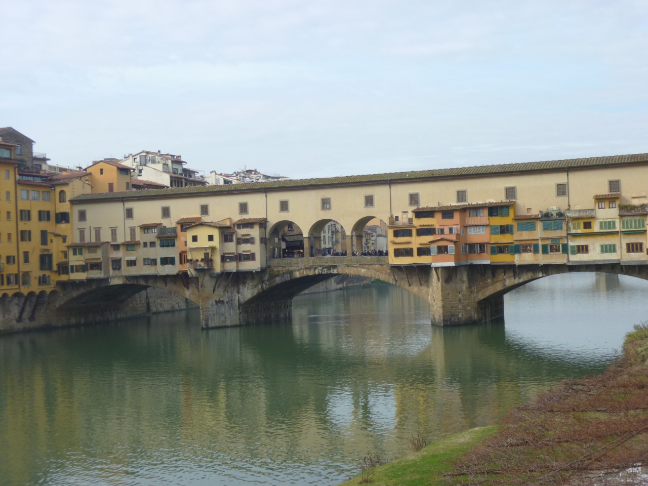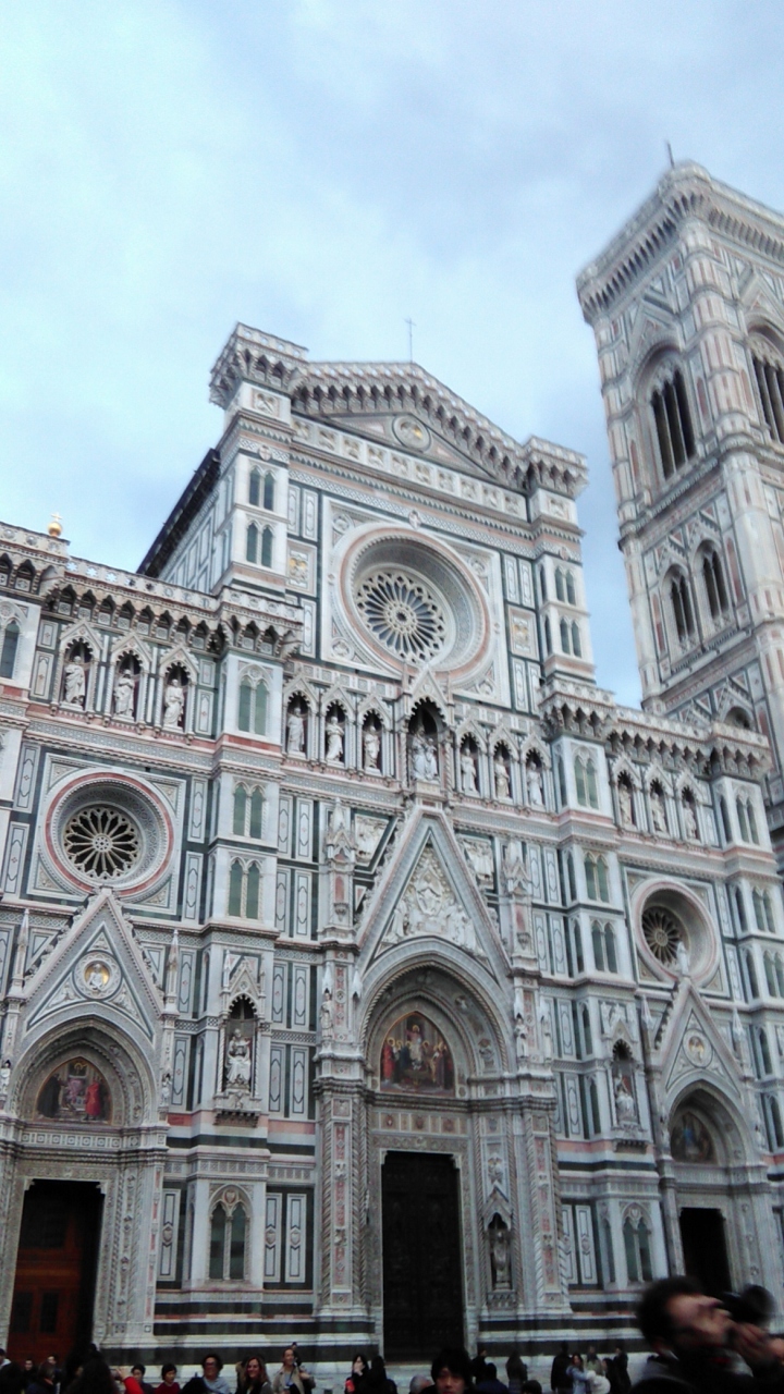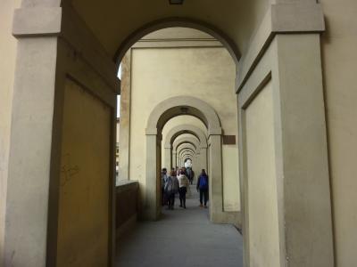 とても目立つ塔があり広場から見た姿はフィレンツェらしいものです。入り口にはダビデ像があり内部には美術品や五百人広間などがあります。内部を見学していると塔の階段に入る受付があり塔にも登れます。古い螺旋階段をハアハアいいながら頑張って登りました。回廊のような場所に着いて一休みします。下にはウッフィツィ美術館のカフェのテラスが見えて、皆さんがこちらの塔の写真を撮っていました。前日には私も撮っていました。さらに上に登れます。狭いスペースでした。突然鐘が鳴って驚きました。その上に続く螺旋階段は通航止めでした。