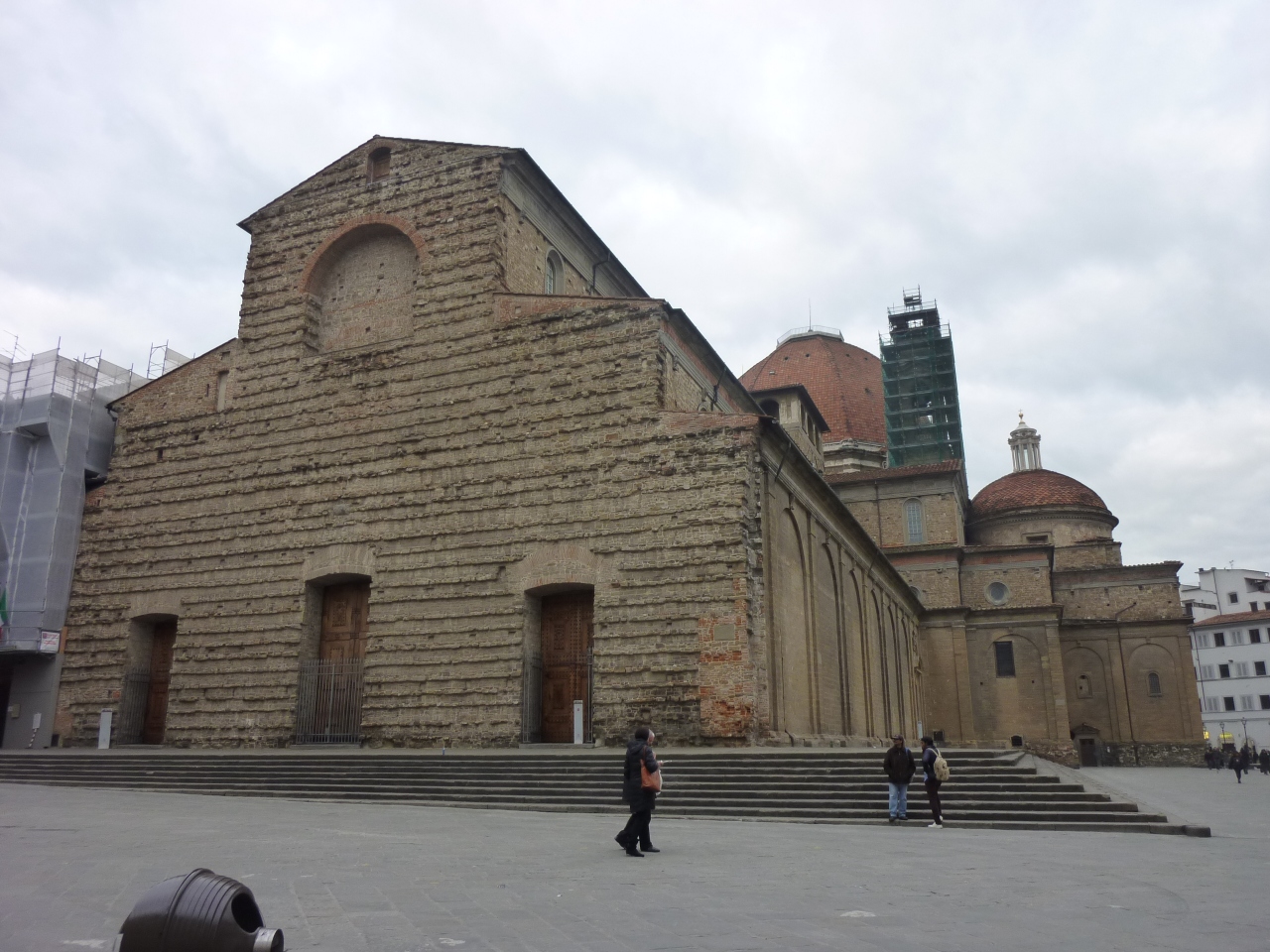 前回来たときには時間がなくて見学できなかったので、メディチ家礼拝堂も併せて見学しました。正面のファザードは無骨な石造りの姿です。中庭にオレンジの木があり絵画のような眺めでした。ステンドグラス、絵画、展示品をゆっくり見学することができました。