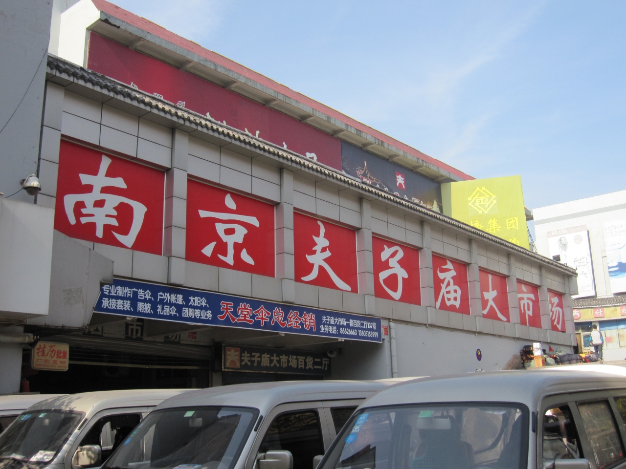 夫子廟は孔子を祭った寺です。周辺の建物を再開発しました。土産物屋や食べ物屋、食堂がたくさんあります。水路があり遊覧船に乗れます。江南風の建物が並んだ南京の観光地なので観光客が多いです。夜もライトアップしています。
