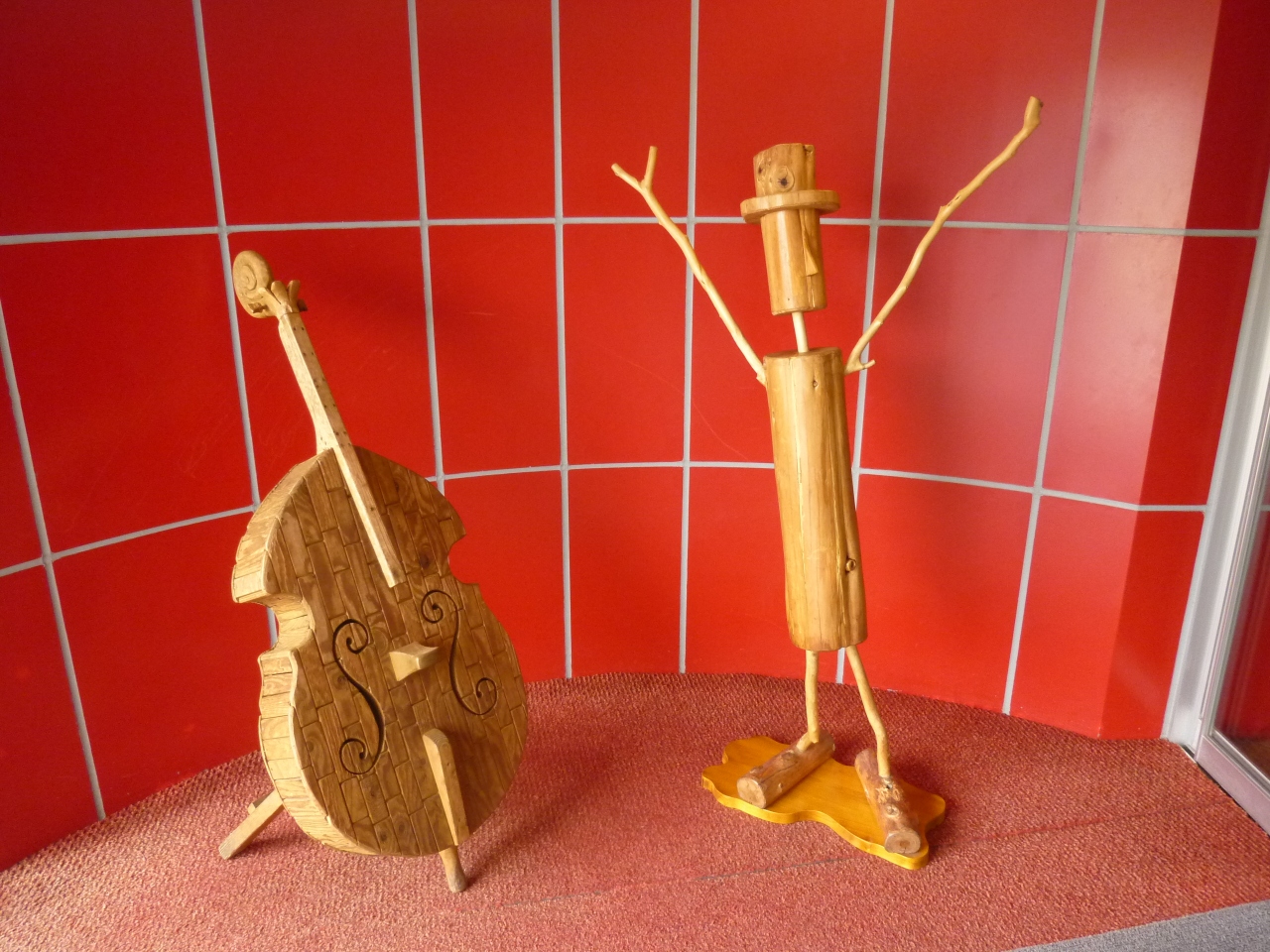 野外の池には水芭蕉がたくさん咲いていていました。賢治の作品に水芭蕉の出てきた作品は何だろうと考えながら歩きます。さわやかな風が心地よく、林を散歩をしても所々に賢治の世界を表す展示があってたいへんおもしろかったです。林を歩いて一つ一つの説明をゆっくり読んでいくと贅沢な時間が過ぎていきます。館内に向かうアプローチも工夫があって宮沢賢治の童話の世界への入り口になっています。屋内には手作りの展示や天井を風の又三郎が飛んでいたりいろいろな工夫があります。賢治のことがもっと知りたくなって宮沢賢治記念館に行きました。おすすめは入り口にある木製のチェロの模型です。