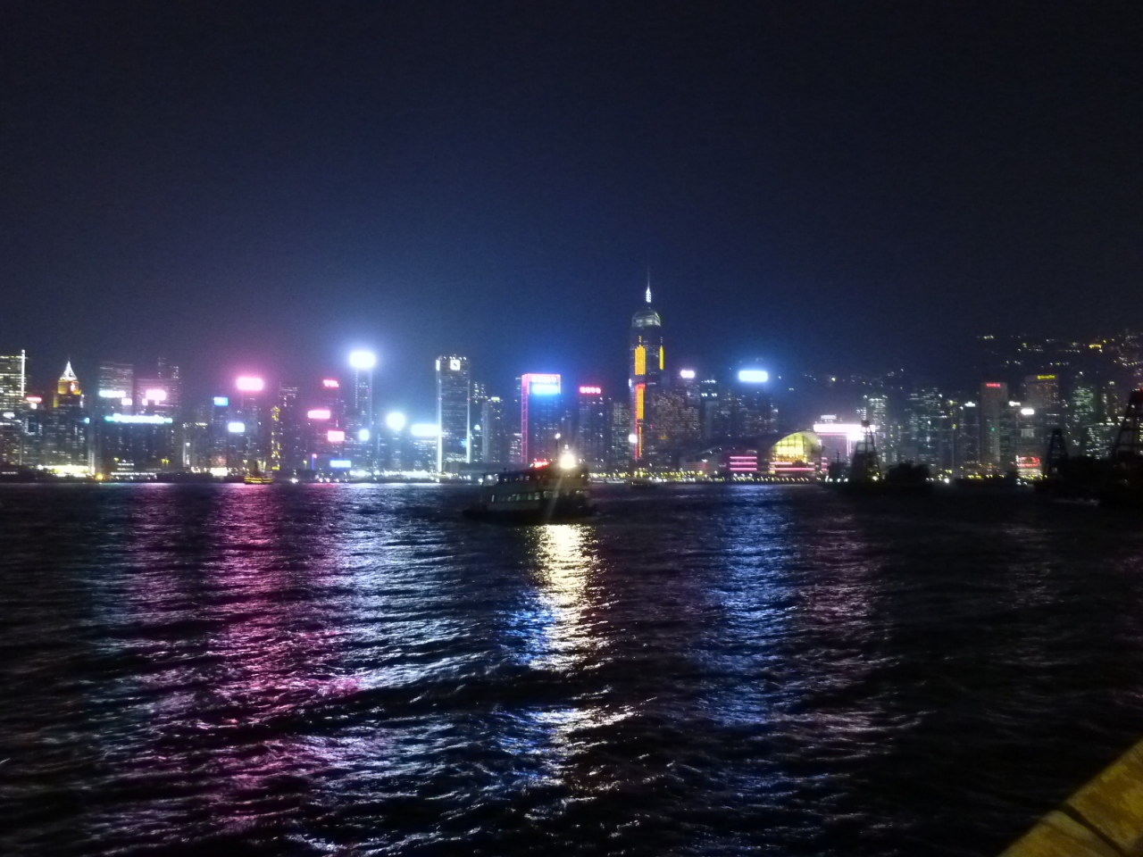 尖沙咀側から香港島の高層ビルの灯りがきれいでした。海に映るネオンが写真にもきれいに写りました。レーザーは期待ほどではありませんでした。短時間なのであきずに見ることができました。次回はフェリーボートに乗って見たり、山の上から見たい物です。