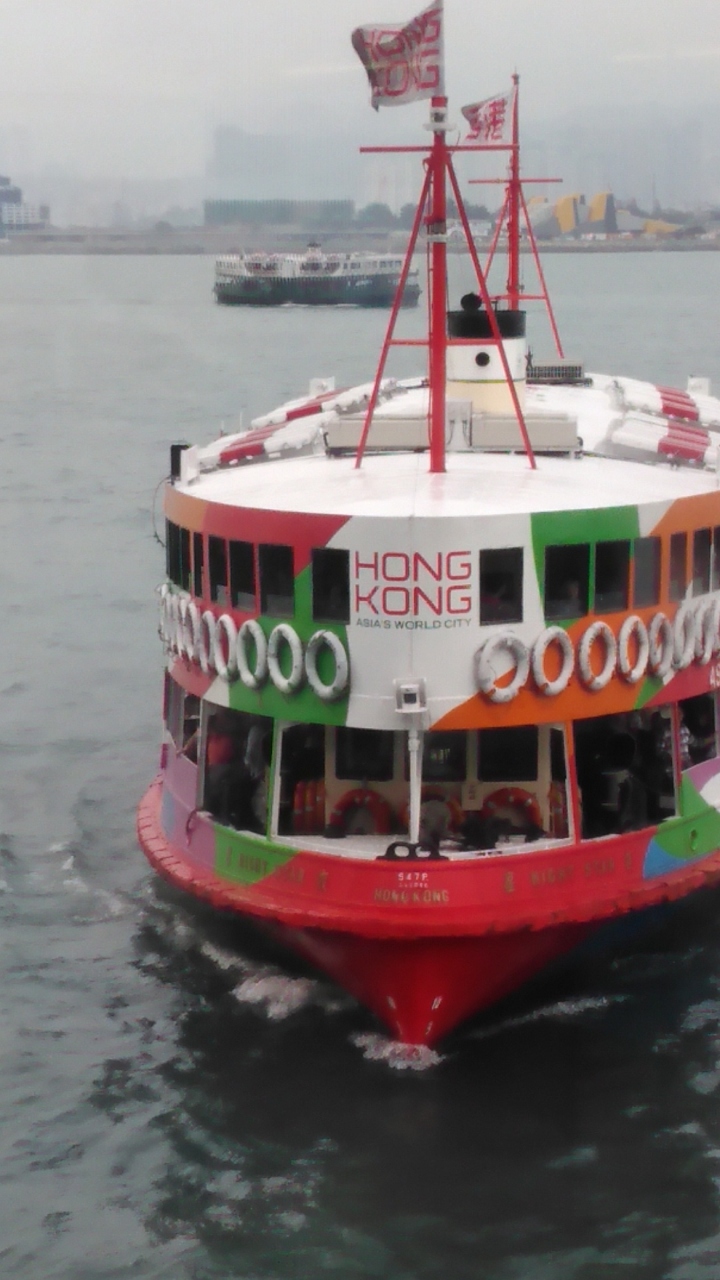 香港島の中環駅から歩道橋を歩いて7番埠頭までまっすぐに来ました。オクトパスカードで簡単に上の席に座れました。潮風に吹かれて10分くらいの時間でしたが気持ちのいい時間を過ごせました。少し揺れるのがまたいい感じです。