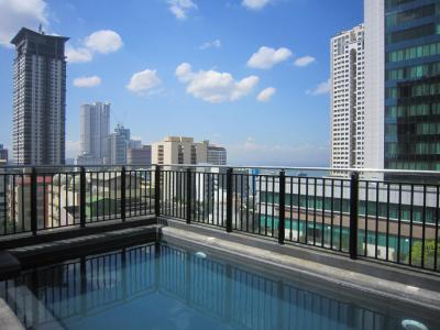 最上階にはマニラ湾を臨めるプールやジムがあり設備も整っている。