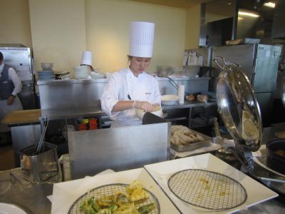 食事は各ブースにそれぞれの国の料理が用意されていて(日によって異なるがイタリア、ベトナム、タイ、中国など)内容も工夫されていて味もとても良かった。 がしかし、北海道らしい食べ物、ウニ、いくら、ホタテ、カニやジンギスカンなどを期待していた当方には残念だった。