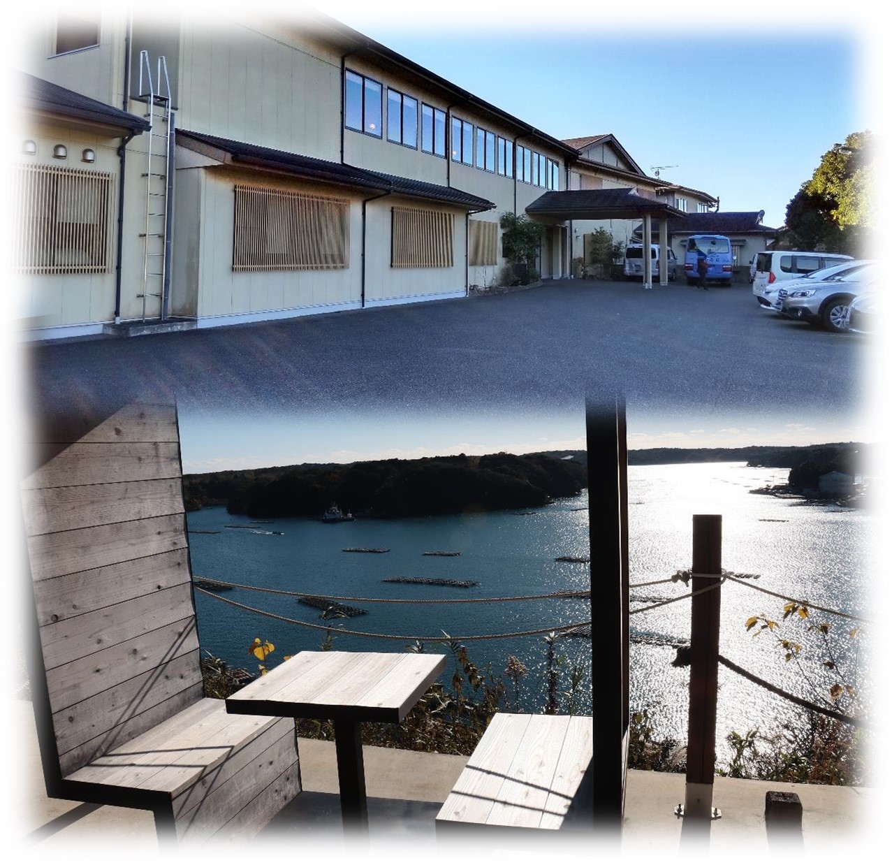 海を見下ろす高台に建つ「いかだ荘。