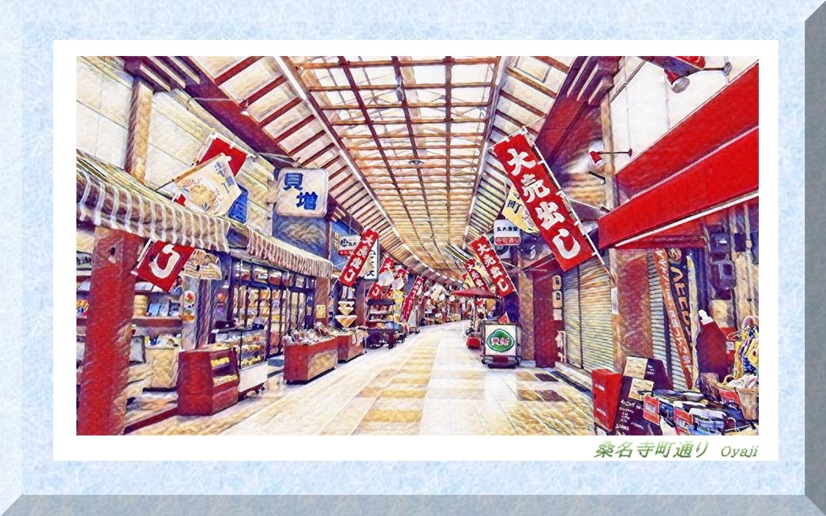 寺町堀沿いを南北に約200㍍に渡って、アーケードを備えた寺町商店街がある。