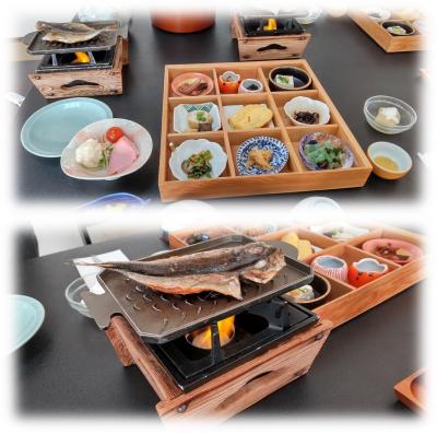 朝食もボリュームのある品揃え、目の前で焼く肉厚の鯵の干物は魚好きの自分には嬉しかった。
