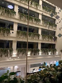 部屋の前からガラス越しに中庭式ロビーが見えました。
