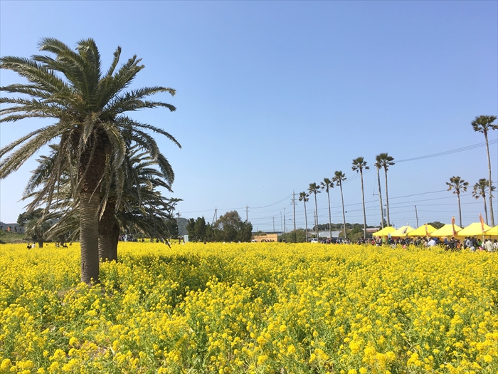 菜の花と河津桜が一緒に見られるので、2色のお花見が楽しめます。