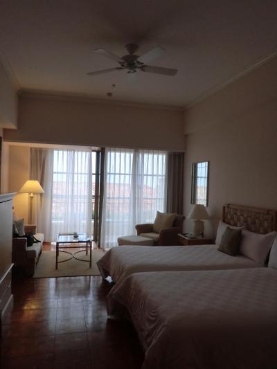 友人との旅行2日目に宿泊しました!まず驚いたのはロビーフロアが半屋外になっていることでした(@д@)住んでいる北海道と比べるとありえない光景に驚き…。冬だったので若干寒かったですが、ウエルカムドリンクが暖かく、チェックインもフロントに行かずドリンクを飲みながらゆったり待てたのでセレブな気分を味わえました。部屋までの廊下や階段も一切窓がなく、暖かい時期なら最高だろうな~と思いながら部屋へ行きましたが…端っこの部屋だったためとにかく遠いのと、部屋の前に大きな建物(室内プール?)があり、外の景色が見れなかったのは残念でした。また、内装等の改修時期だったのか、自分たちの部屋に向かうまでに、扉が開けっ放しで作業途中のガランとした他の部屋を見なければいけないのも惜しいところでした。とはいえ、ホテル全体の雰囲気や、外のプール、売店、ブセナ海中公園など、ホテル周りを歩いているだけで1日過ごせるくらい見所満載で満足です!朝食も、おかゆなどの和食もあり、前日沢山飲んだ日でも安心(?)です。(飲み物にお茶がなかったのは残念ですが・・・。)かわいい部屋の鍵は売店でも購入可能なので、旅の記念にいいと思います(^-^)