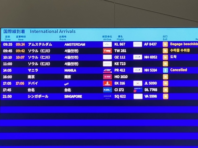ちなみに、10時に着いたアシアナ便で検疫と入国審査が終わり出てきたのは、午後1時