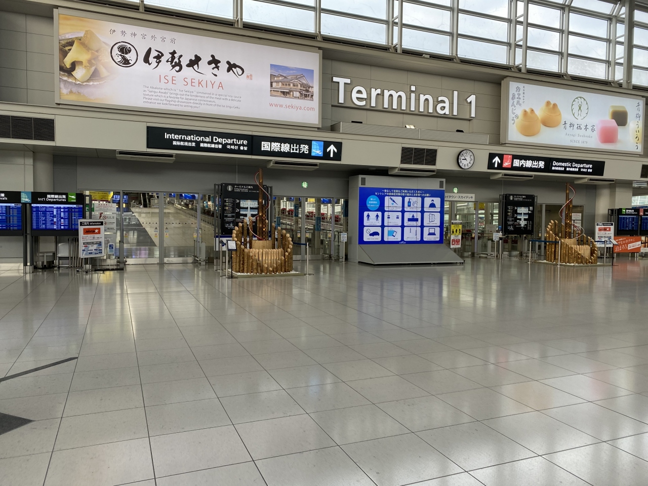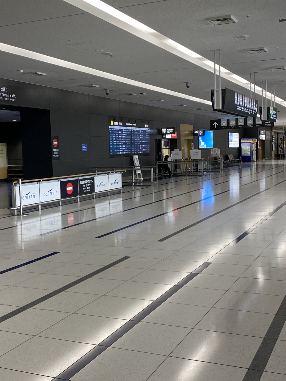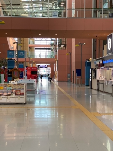 到着ロビーは、職員のが多いくらいでコーヒー店も閉まってました。