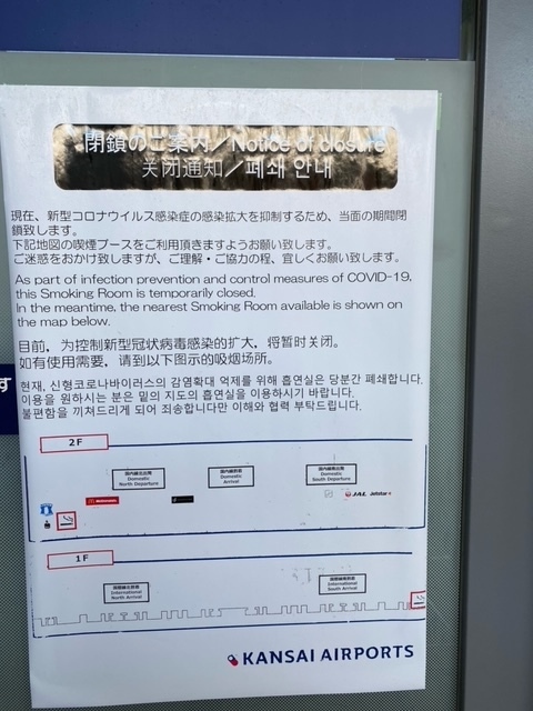 挙句の果て、喫煙ルームも閉鎖されています。各階に一つだけ開いているようです。