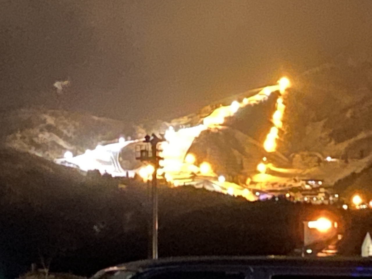 周りにはスキー場がいくつかあり土曜日でナイターのライトが沢山見えました。