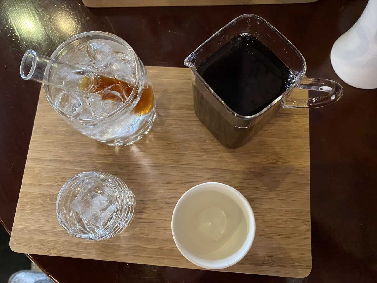 知らない私は、小さなグラスに氷が1個入ってるのがあり、暖かいコーヒーを少し入れて飲むものと思いました。