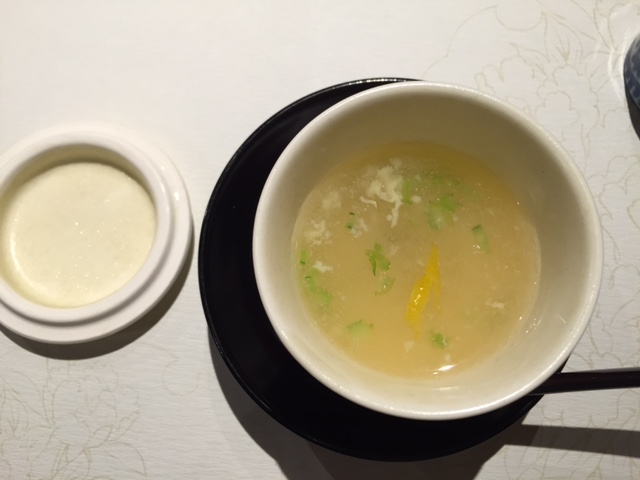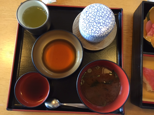 日本料理の定番、刺身と天ぷら、茶碗蒸しが付いてる