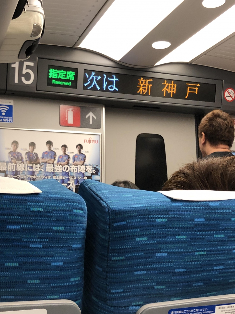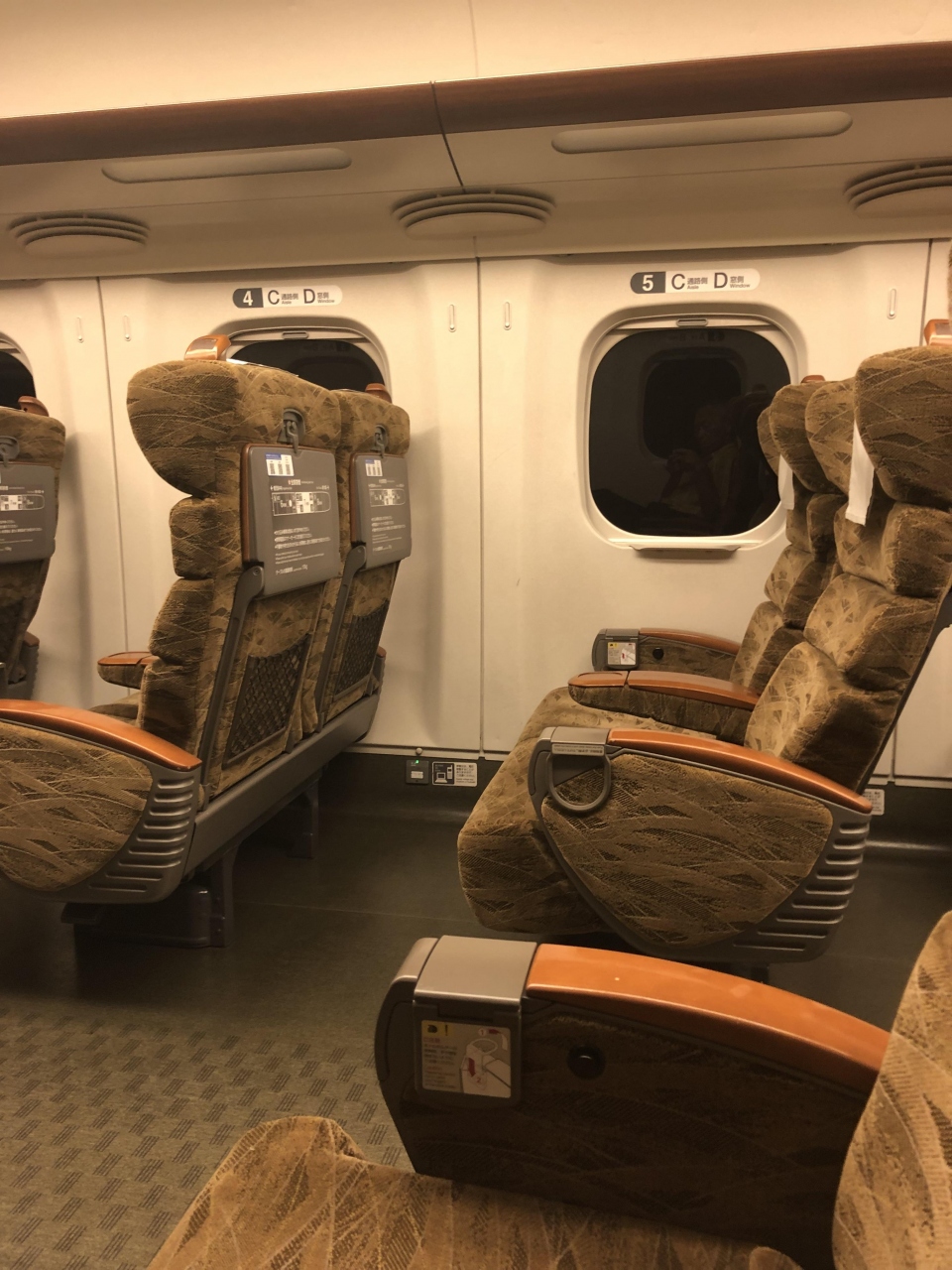 東海道山陽新幹線は、2席3席のシートでしたが九州新幹線は2席2席のシートでちょっと豪華な気がします。