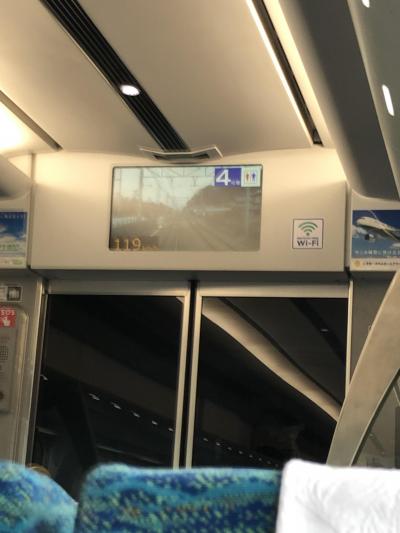 車内のモニターには、電車速度表示があります。- 旅行時期