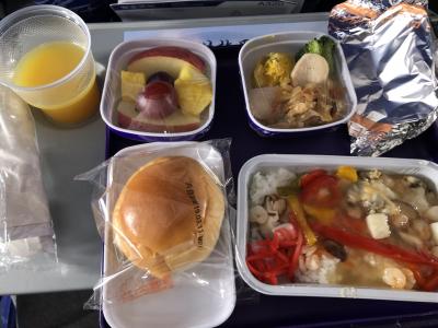 機内食は、いつも美味しい。毎回完食です。