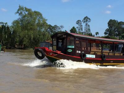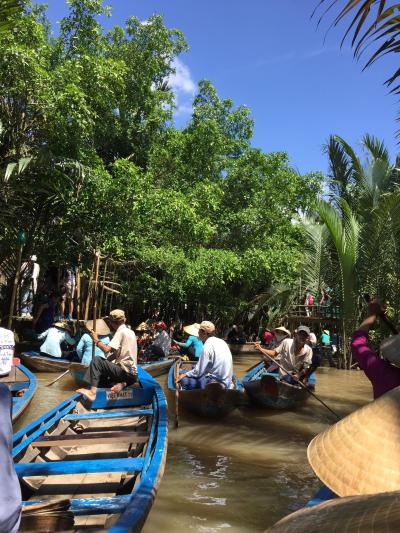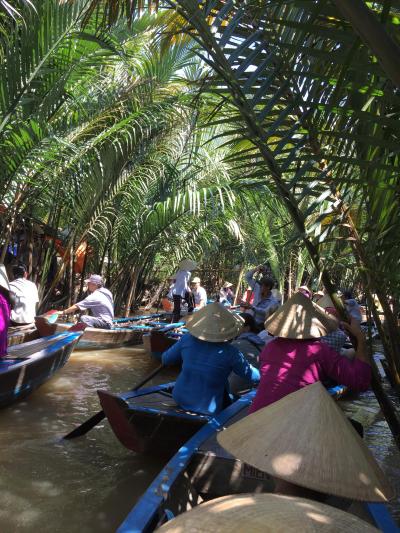 メコン川の中州にある蜂蜜工場、ヤシキャラメルなど工場見学しながらめいんの小さなボートに乗る。