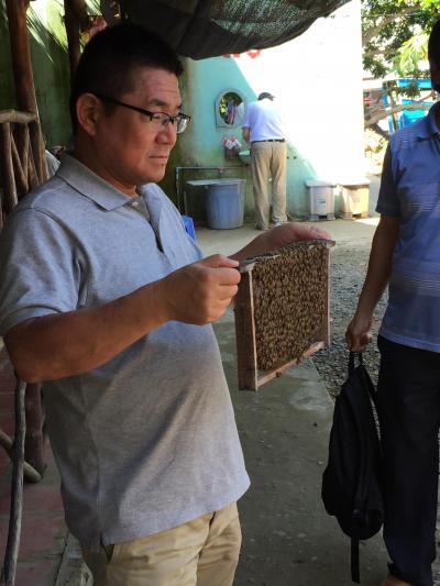アテントしてくれている友人の子供が、ミツバチに刺され大粒の涙。