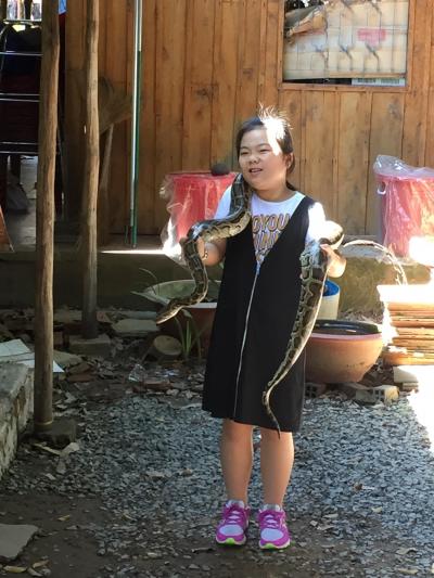 大きなニシキヘビを蜂に刺された後10分くらいなのに持っています。