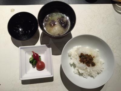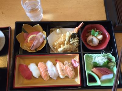 日本料理の定番、刺身と天ぷら、茶碗蒸しが付いてる