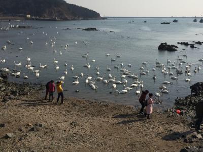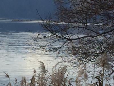 お昼の食事前に、取引先社長から白鳥がたくさん来ていっるから見に行こう。