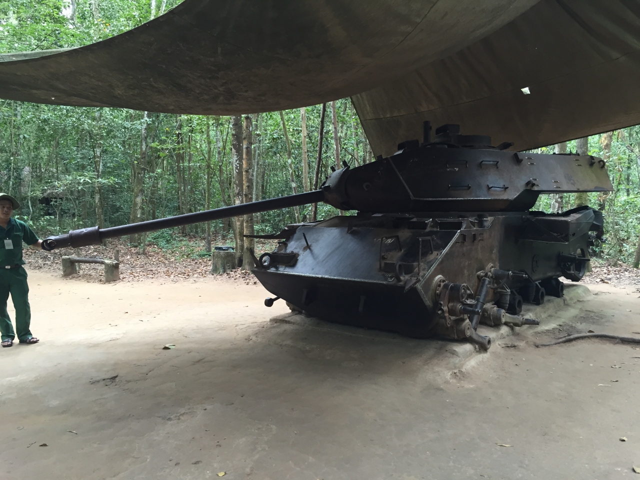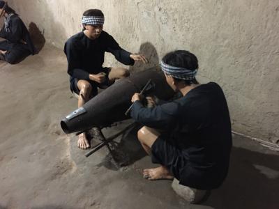 クチトンネル入口横で、昼食を頂きての見学。