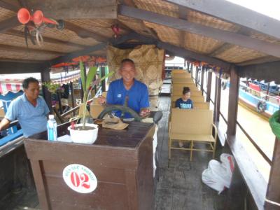 40人くらい乗れる船にベトナムの友人と私たちの3人とガイドの女性の4人しか乗らずに出航。