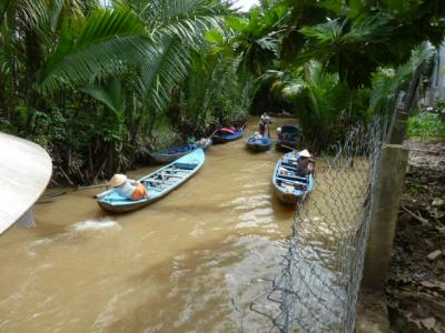 まずは、ハチミツのお茶お店、ココナッツ飴のお店と行き伝統の歌を聴きながらお茶を頂くお店、馬車に乗って手漕ぎの船でのクルーズ乗り場へ、メコン川クルーズのメインは入り組んだところを10分ほど、下の船に戻り昼食のできるレストランへ行って戻ってきました。- 旅行時期