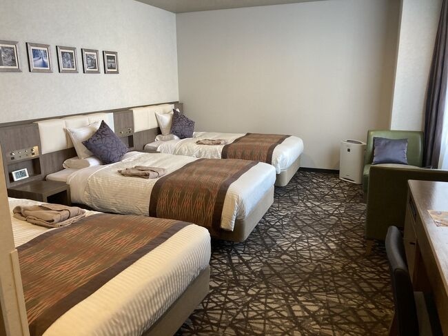 サッポロ割でホテルマイステイズ中島公園に宿泊。車があるのでいいけれど、なかなか不便な立地だわ。車も駐車場代が宿泊者でも1500円かかるし。サッポロ割じゃないと泊まらなそう。今回はYさんとお部屋をシェアしてトリプルルーム。子供たちは二人でベッド1台。というか、2台ベッドをくっつけて、ハリウッドツインにした。部屋はなかなかきれいでゆったり。