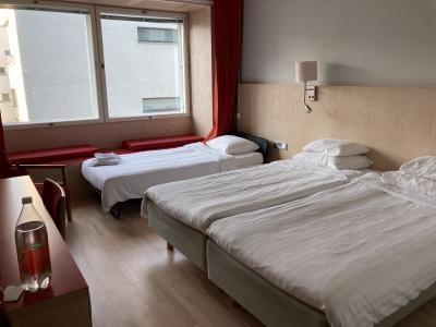 3ベッドのファミリールーム、朝食付きで1万4千円弱。立地はいまいちだけど、安くて広くて朝食付きはありがたい。ガムラスタンのホステルは3人だと1万円越えだった。