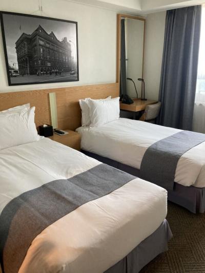 新しくてとてもきれいなホテル。ツインルームも十分な広さ。