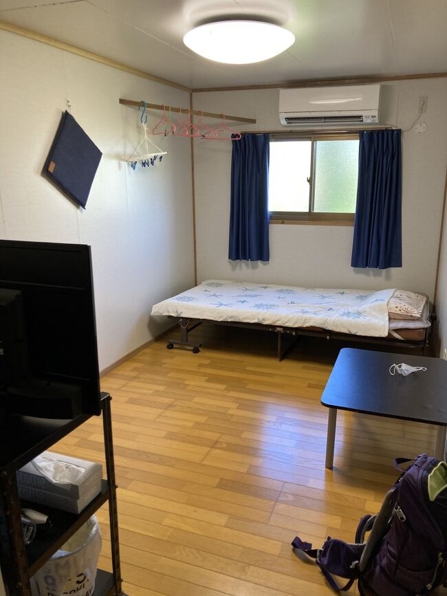 東のほうにある一泊目という民宿で、一軒家貸し切り。普段は2万円以上するみたいけど、このご時世で一泊素泊まり1万円だった。子供たち無料なので、ひと家族5千円!