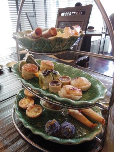 メニュー。アフタヌーンティーは600バーツ。歩き方には360とあった気がする。すごい値上がり具合だな。まあそれでもこれだけいろんな種類の、洋風&タイ風デザートがついてこの値段はリーズナブルなほうだとは思うけど。