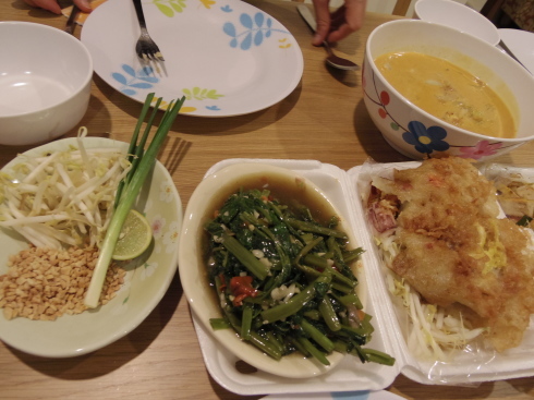 晩御飯はプロンポン駅近くのお店イムちゃんでテイクアウトし、家で食べることに。パッポンカリー。トムヤムクン。パッタイ。どれも普通においしかった。しかし激安ではない。大体一皿80バーツとか。円安だから高く感じてしまう。空芯菜炒め、豆腐と野菜のレッドカレーなど。全体的にマイルドな味付け。