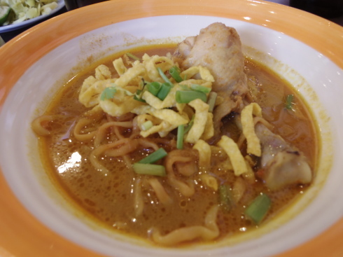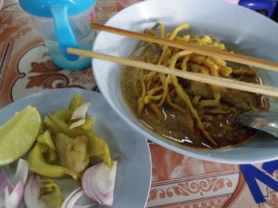 ここのカオソーイも40バーツ。やっぱり量は少ない。ここのほうがカレー風味が強くてスパイシーかな。私はラムドゥアンのほうが好みかも。ここはカリカリに揚げた麺も乗っていた。- 旅行時期