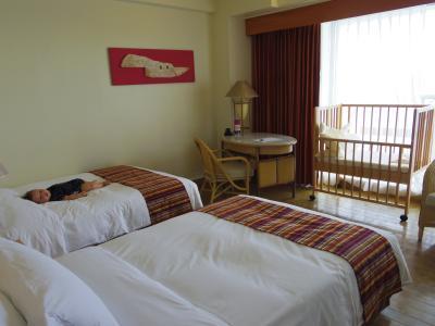 子連れ石垣旅行ではANAインターコンチネンタルホテルに宿泊。お部屋も割と広めのオーシャンビュー。ベビーベッドもある。大きなバスタブ。シャワーブースは別。